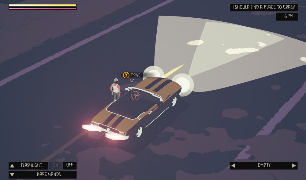 عناصر بقاء: مدیریت منابع، جستجو برای سوخت، تعمیر خودرو و جمعآوری سلاح برای مقابله با هیولاهای عجیب و غریب، ستونهای اصلی گیمپلی را تشکیل میدهند.