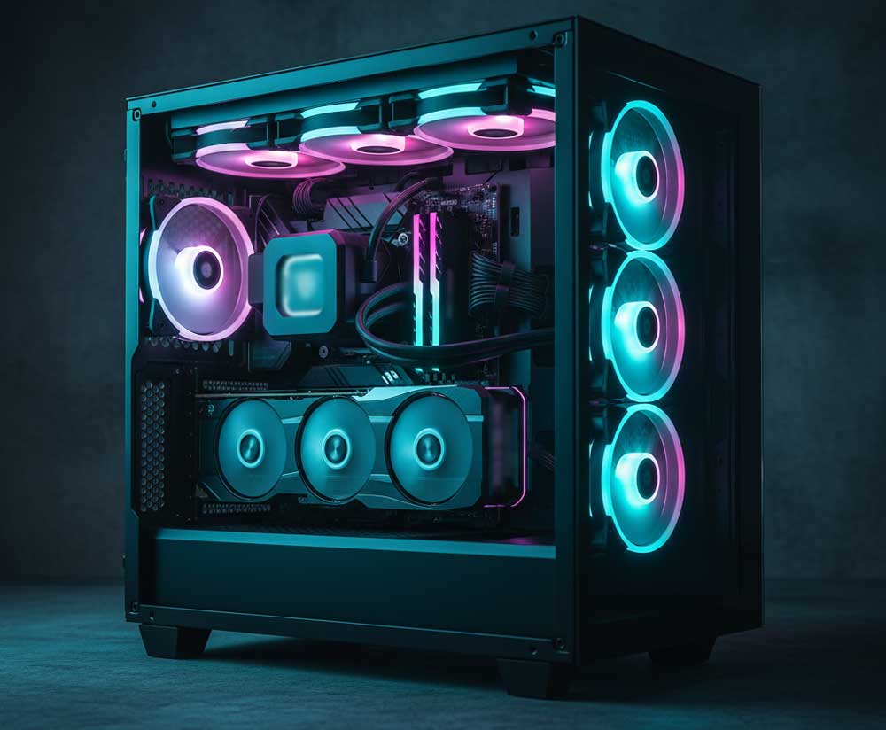 • خنک‌کننده CPU: یک سیستم خنک‌کننده مایع ($AIO\ Liquid\ Cooler$) ۲۸۰ یا ۳۶۰ میلی‌متری ضروری است. این خنک‌کننده‌ها امکان حفظ فرکانس‌های توربو ($Boost\ Clocks$) را در طول مسابقات طاقت‌فرسا فراهم می‌کنند که مستقیماً به فریم‌ریت بالاتر منجر می‌شود.